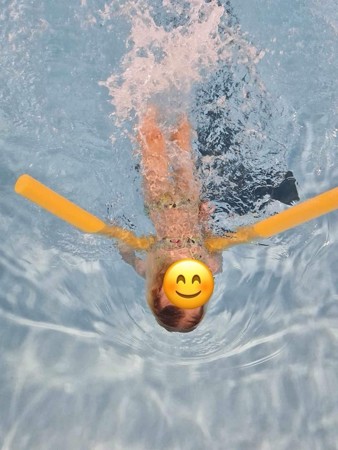 Fokus på å bli trygge i vannet, leke og noe svømmeteknikk. De som ville fikk også hoppe på litt dypere vann sammen med voksen 💦