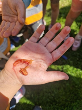 Når fiskene ble renset fulgta barna med på prosessen, og fikk se hva fisken hadde i magen og ikke minst hva den hadde spist. Siden den enen fiskan var ei jente, fikk barna også se på rognen og fikk da ett innblikk i hva kaviar er laget av.