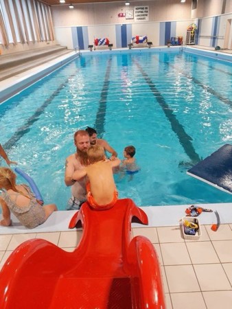På slutten av svømmetreningen så fikk vi lov til litt frilek, da var sklien i hallen en populær aktivitet og det var også noen avbarna som syntes dykking etter gjenstander var så gøy at de ville trene mer.