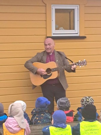 Biskopen fikk først en omvisning på uteområdet og fikk se hvor barna leker. Biskopen tok seg god tid og hadde en hyggelig prat med barn og ansatte. Etterpå overrasket biskopen alle ved å spille gitar og synge, han sang bla «Lille Petter edderkopp» , «Mikkel Rev» og «Hjulene på bussen» noe som skapte stor glede blant barna. Biskopen viste også fram kjolen og kappa han bruker. Til slutt ble det en omvisning inne i barnehagen, der biskopen fikk se de ulike rommene og oppleve hverdagen til barna og de ansatte. En minnerik dag for både store og små!