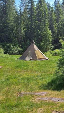 Så var tiden kommet for å få opp lavvoen, og få tingene på plass i den.