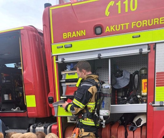 I forbindelse med brannvernuka var vi så heldige å få besøk av brannbilen fra brannstasjonen på Kopsatd.