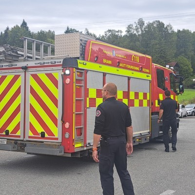 Når brannbilen reiste fikk vi også en liten demostrasjon av blålysene og sirenene, til stor glede for både vokse og barn.