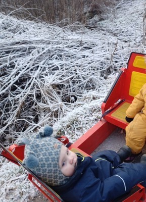 På tur har vi observert frost og is i naturen, og undret oss sammen over det vi ser. Dette har skapt gode samtaler, nysgjerrighet og læring. Vi gleder oss til videre undring og utforsking sammen.