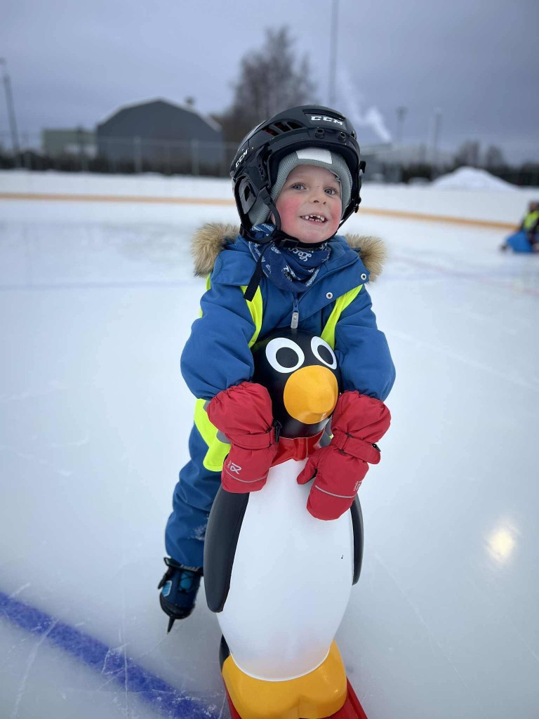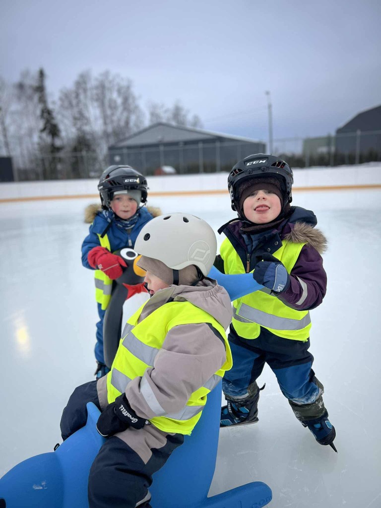 4 åringene på Stubben var på skøytebanen i dag, og snakk om å kose seg max. Vi kom til en nypreppet og fin bane i dag. Der fikk vi god hjelp av de voksne til å få på skøytene før vi kom oss ut på isen.